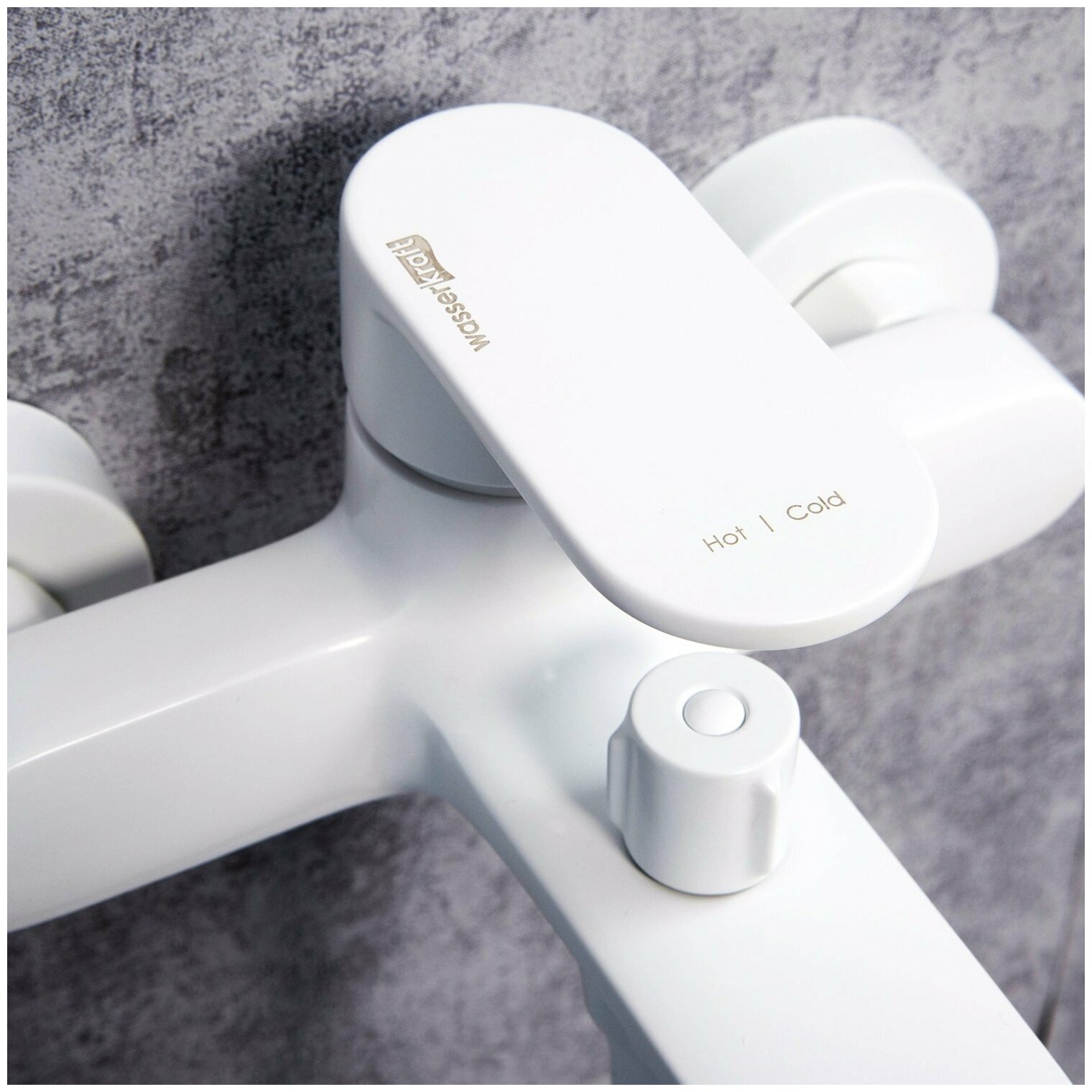 Однорычажный смеситель для ванны WasserKRAFT Mindel 8501 с душевым гарнитуром. Приятные круглые формы наполнят интерьер гармонией, а благодаря белому цвету в ванной всегда будет царить ощущение чистоты и воздушности.