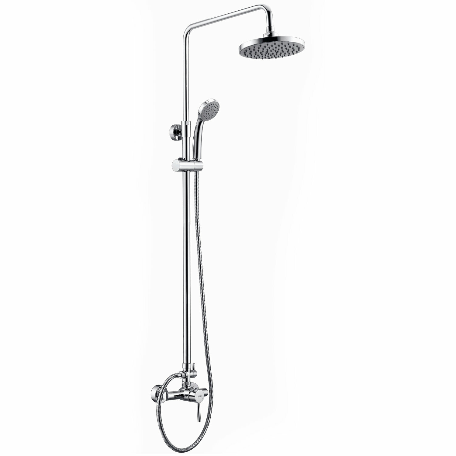 Держатель с изменяющимся углом поворота лейки 180 градусов. Держатель можно поднять или опустить на любую удобную для Вас высоту, для этого необходимо нажать кнопку и, удерживая, перемещать по стойке. Изделия проходят процесс многослойного нанесения на корпус изделия хрома и никеля. Такое покрытие устойчиво к потускнению, легко очищается и придает изделиям зеркальный блеск и серебристый цвет.