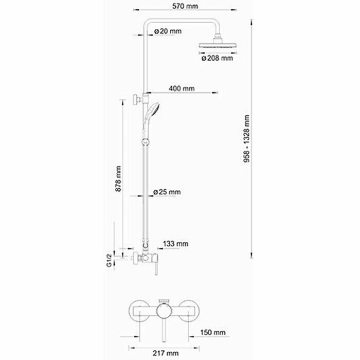 | Высота душевой штанги | 60 см |