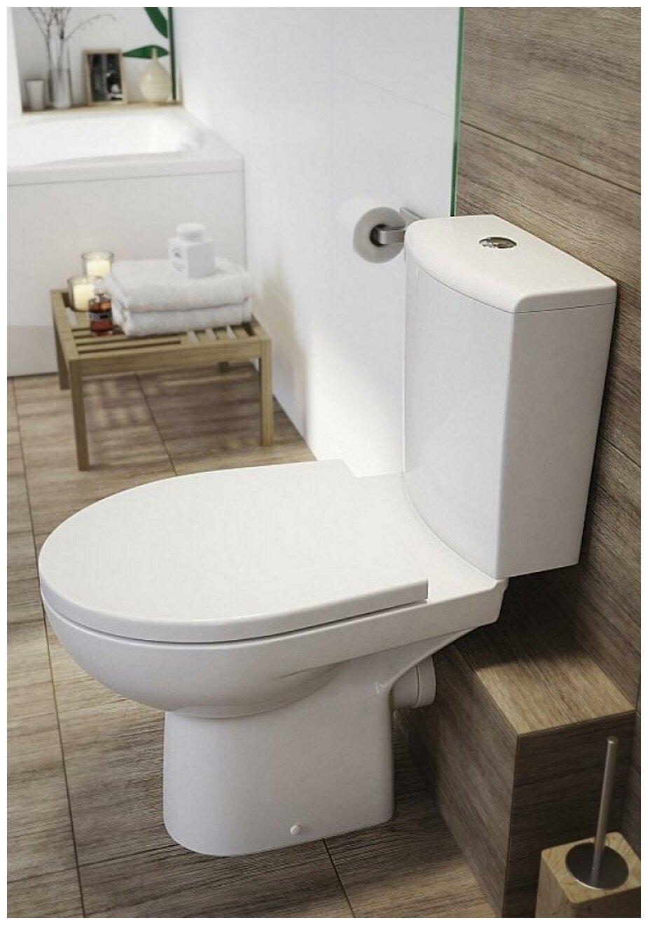Безободковый напольный унитаз-компакт с антибактериальным сиденьем с плавным закрыванием и легкосъемным механизмом. Двухуровневая арматура с механизмом смыва OLI 3/5л.