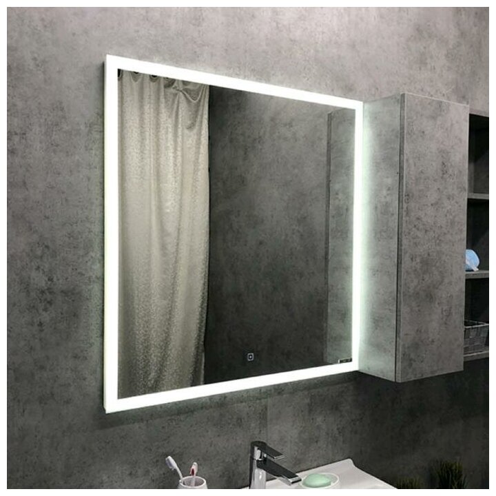 Зеркало оснащено встроенным светодиодным светильником и сенсорной кнопкой включения подсветки. Высококачественное зеркальное полотно с амальгамой на основе серебра. Габариты (ШхВхГ): 800*800*30 мм. Зеркало для ванной комнаты с проводом длиной 1,3 м. и вилкой подключения в сеть 220 В.
