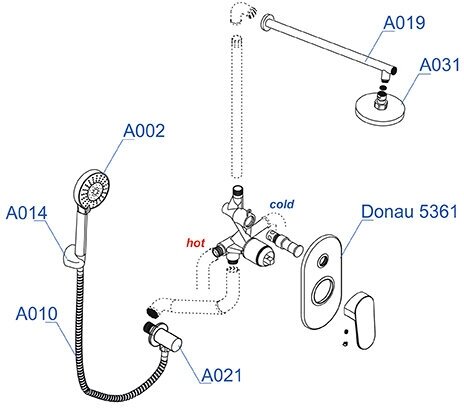 | Оснащение | Душевая лейка / Шланг для душа / Держатель душа / Кронштейн для верхнего душа / Шланговое подключение / Скрытая монтажная часть |