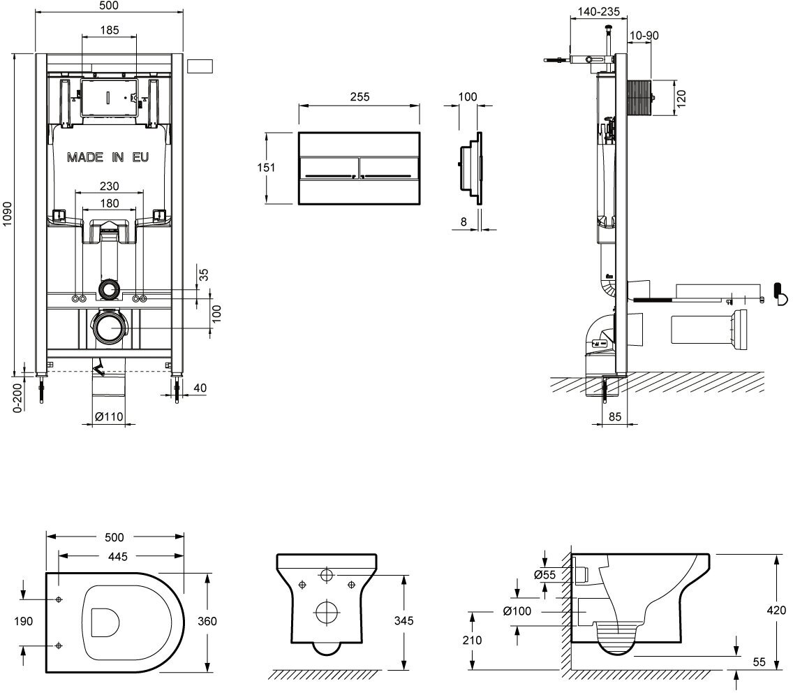 | Состав набора | инсталляция, унитаз, сиденье, панель смыва |