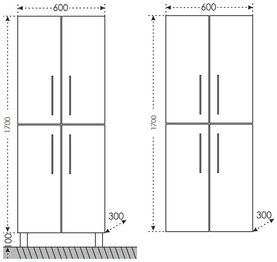 | ВКоробке | Шкаф-пенал - 1 шт. Вкладная стеклянная полка - 4 шт. Комплект доводчиков - 1 шт. Ножка металлическая - 2 шт. Ножка пластиковая - 2 шт. Инструкция - 1 шт. |