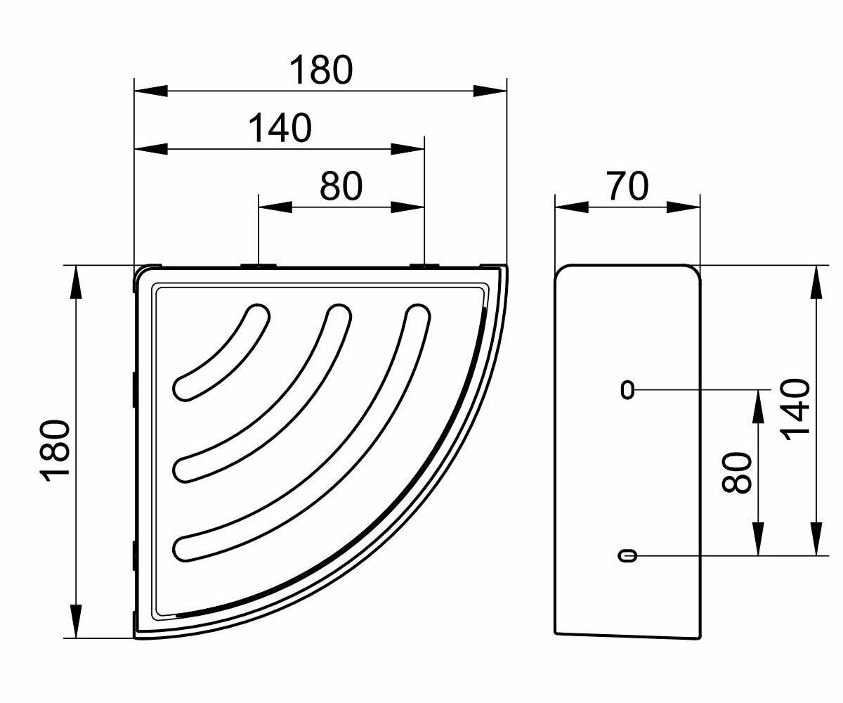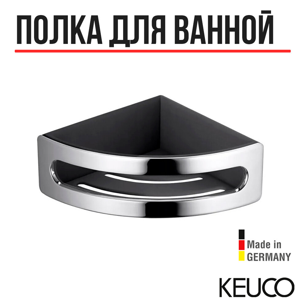 Полка Keuco Elegance New 11657 010001 угловая цвета хром/антрацит из 2-х частей: металлической корзинки и вынимающейся, небьющейся, стойкой к мыльному налету и невосприимчивой к воздействию ультрафиолетовых лучей пластиковой вставки.