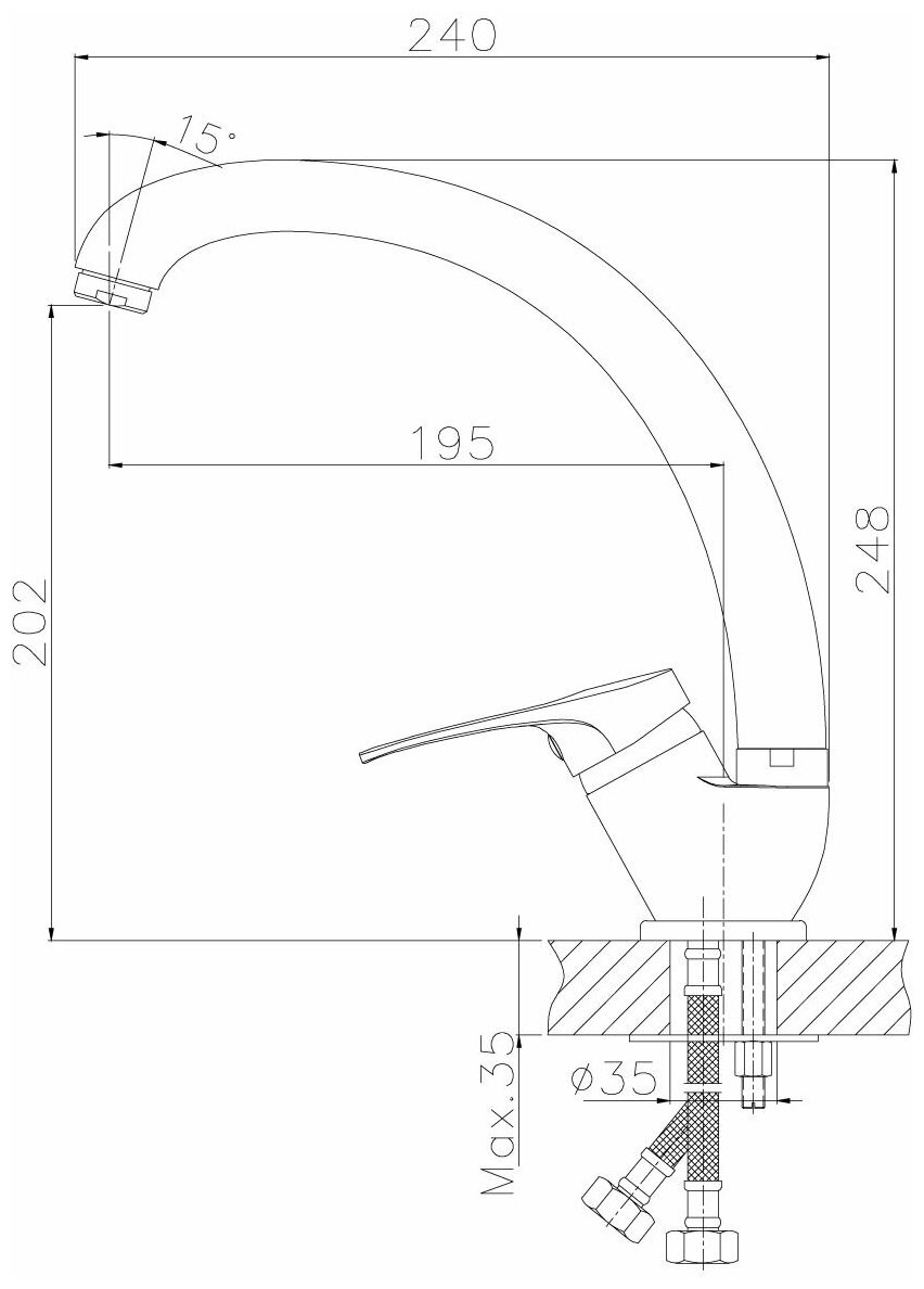 Смеситель для кухни rossinka, арт. В комплекте: Пластиковый аэратор с функцией легкой очистки. Керамический картридж 35 мм. Гибкая подводка 35 см – 2 шт. Присоединительная группа для горизонтального крепления. Металлическая рукоятка.