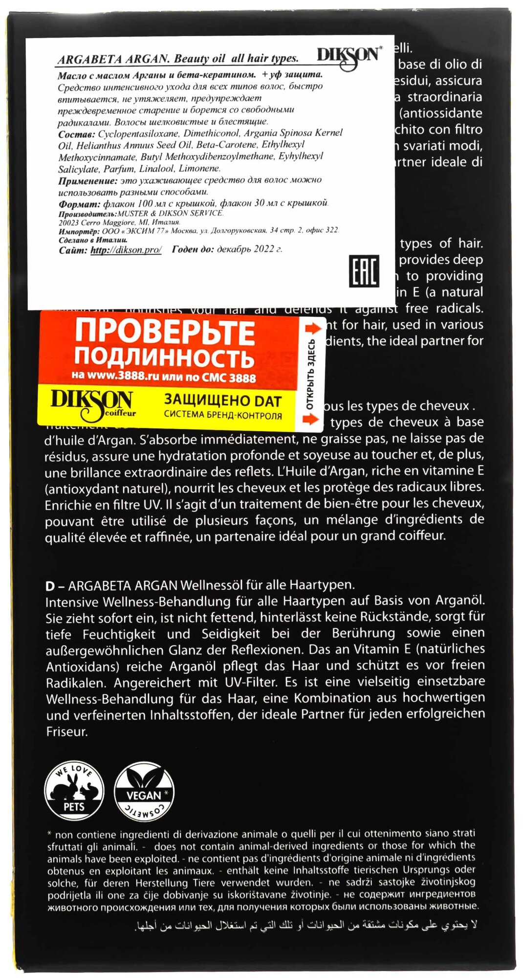 Dikson Масло для ежедневного использования с аргановым маслом и бета-кератином 100 мл (Dikson ) (DIKS2506)