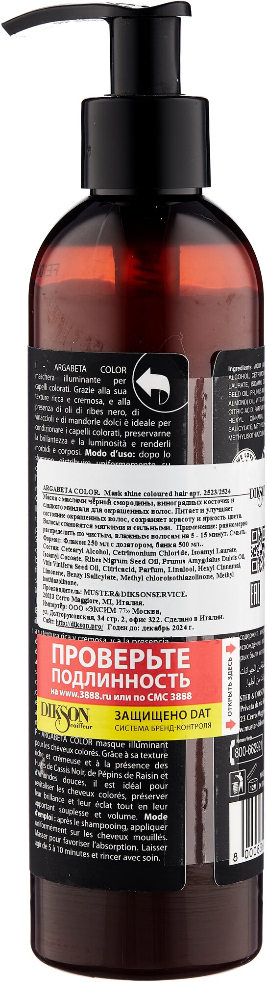 Dikson Маска для окрашенных волос с маслами черной смородины виноградных косточек и сладкого миндаля Shine 250 мл (Dikson ) (DIKS2523)