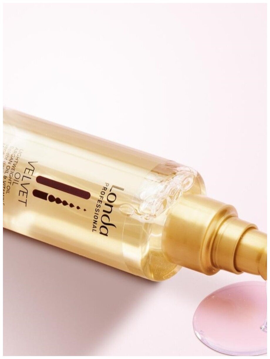 Масло без утяжеления Velvet Oil мгновенно восстанавливает структуру волос любого типа, придает им здоровый вид и блеск. Не утяжеляет волосы. Отличается изысканной парфюмерной композицией. Для наилучшего результата рекомендуется использовать вместе с шампунем, кондиционером и профессиональным средством Velvet Oil. С аргановым маслом и витамином E.