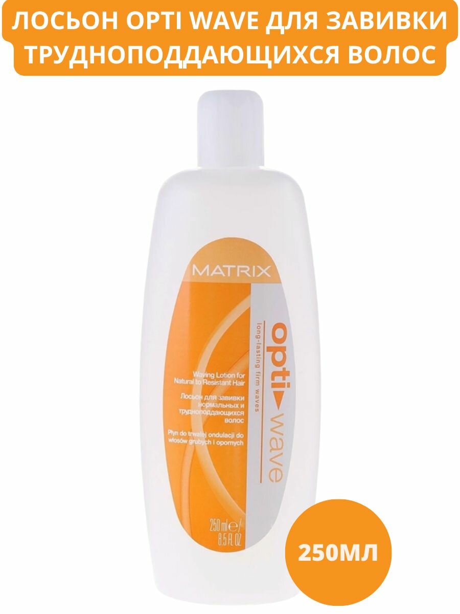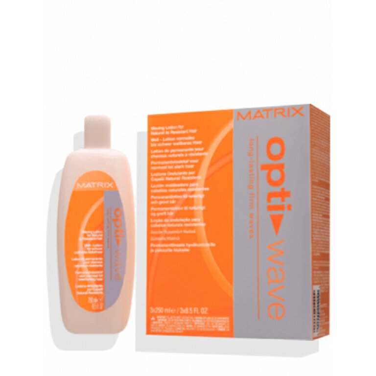 Opti.Wave - гамма продуктов Matrix, предназначенная для стойкой завивки волос длительного действия. Лосьон Opti.Wave (Опти.Вейв) предназначен для стойкой завивки или выпрямления волос длительного действия, при этом деликатно воздействует на структуру волоса. Обеспечивает формирование крутых и стойких завитков, оптимально увлажняя волосы, придавая им блеск и мягкость. После нанесения лосьона необходимо использовать фиксатор химической завивки. Рекомендован для непослушных волос.