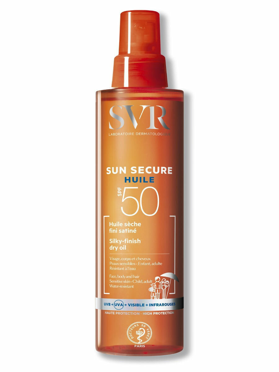 Надежная дерматологическая защита для всей семьи от СВР - Сухое масло SPF50 с потрясающим шелковистым финишем. Солнцезащитное средство в формате сухого масла особенно удобно - легко и быстро наносится, оставляя кожу напитанной и нежной, без липкой и жирной пленки, без белых разводов. Легкий летний аромат поднимает настроение. SVR Sun Secure Huile SPF50 фотостабильно, устойчиво к воде и поту. Формула с органическими фильтрами разработана для гиперчувствительной кожи, не вызывает аллергию. Ровный, безопасный загар, бархатистая кожа и защита от сухости - настоящая летняя мечта! .