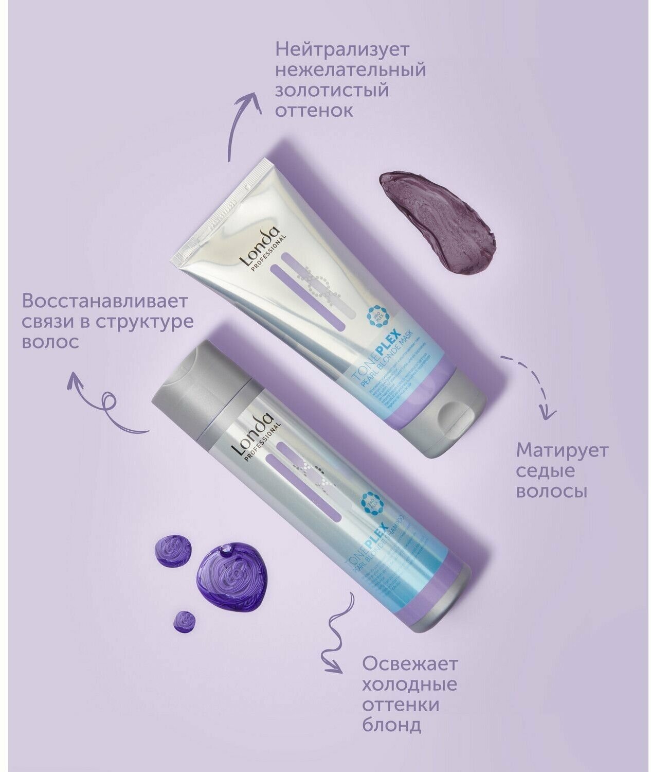 Маска Toneplex "Жемчужный блонд" мгновенно освежает холодные оттенки блонд от 7/ до 10/ уровней и восстанавливает связи в структуре волос. Нейтрализует нежелательный золотистый оттенок на волосах холодного направления. Новая формула имеет более насыщенные красящие пигменты по сравнению с маской линии Color Revive. Матирует седые волосы. С фиолетовыми пигментами и технологией ProPlex.