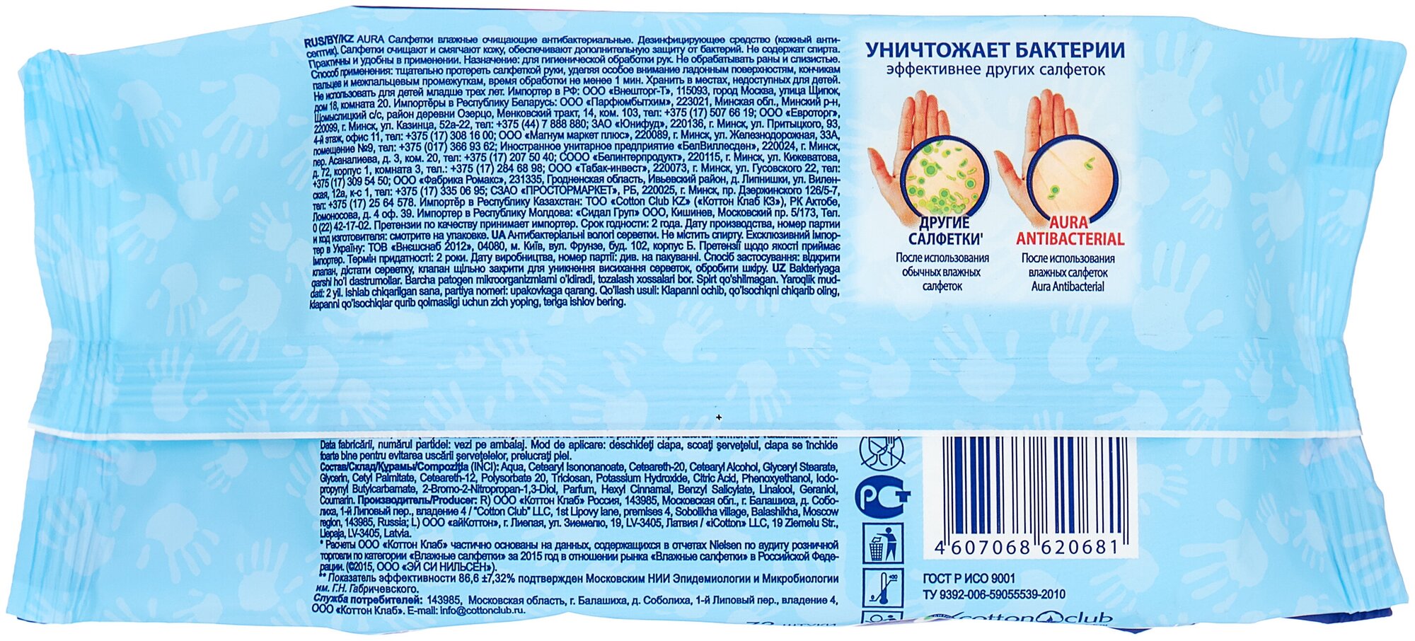 Антибактериальная эффективность подтверждена протоколами испытаний. Салфетки клинически и микробиологически протестированы. Продукция поддерживается Российским Красным Крестом.