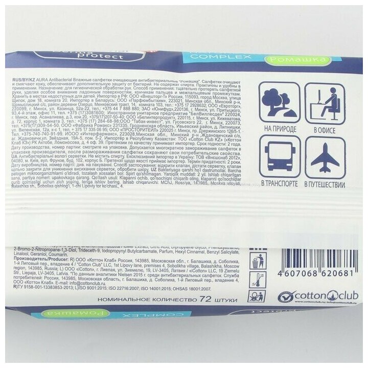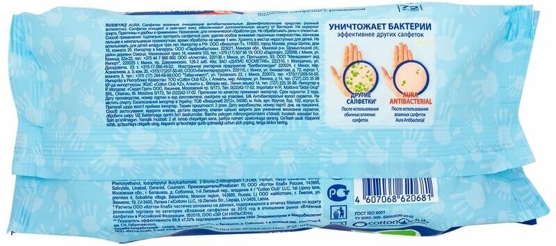 | Тип товара | Салфетки влажные |