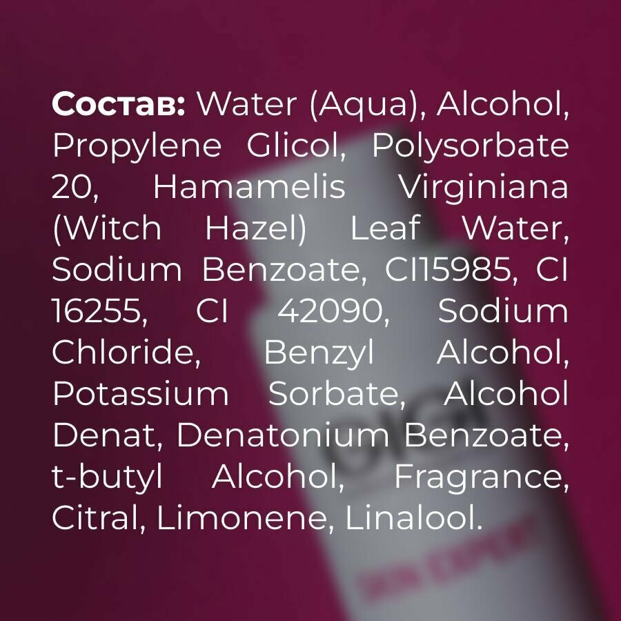Предназначен для ухода за комбинированной и жирной кожей, предрасположенной к угревой сыпи и с выраженным расширением сосудов (купероз, телеангиоэктазии). Основной компонент – гамамелис или орех Вирджинии. Целебный экстракт получают из листьев и коры этого кустарника. Лосьон обладает антисептическим действием (эффективен при лечении гнойных воспалений), сосудосуживающим (поэтому оказывает благоприятное воздействие при куперозе), тонизирующим, освежающим действиями. Является нежным очистителем кожи, а также ощутимо уменьшает секрецию сальных желез и хорошо сужает поры.