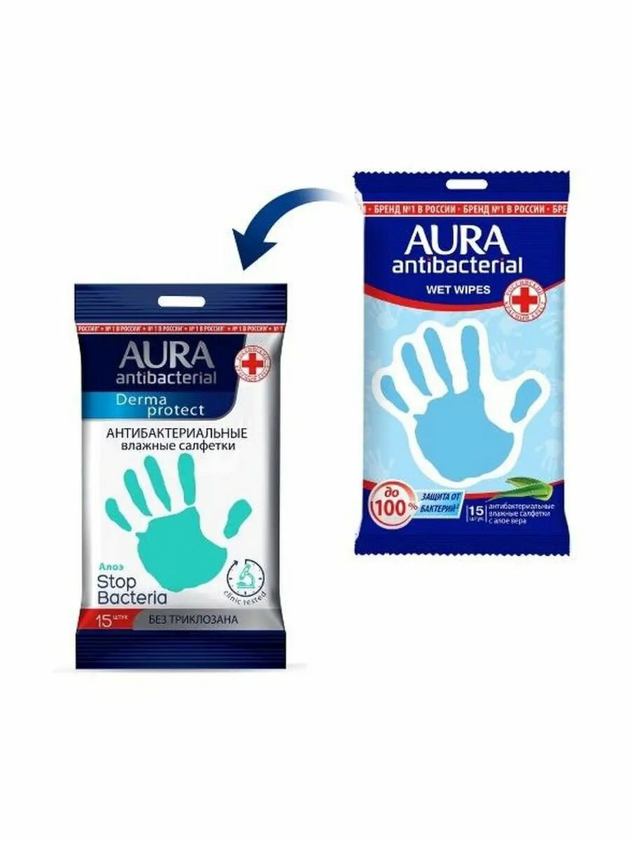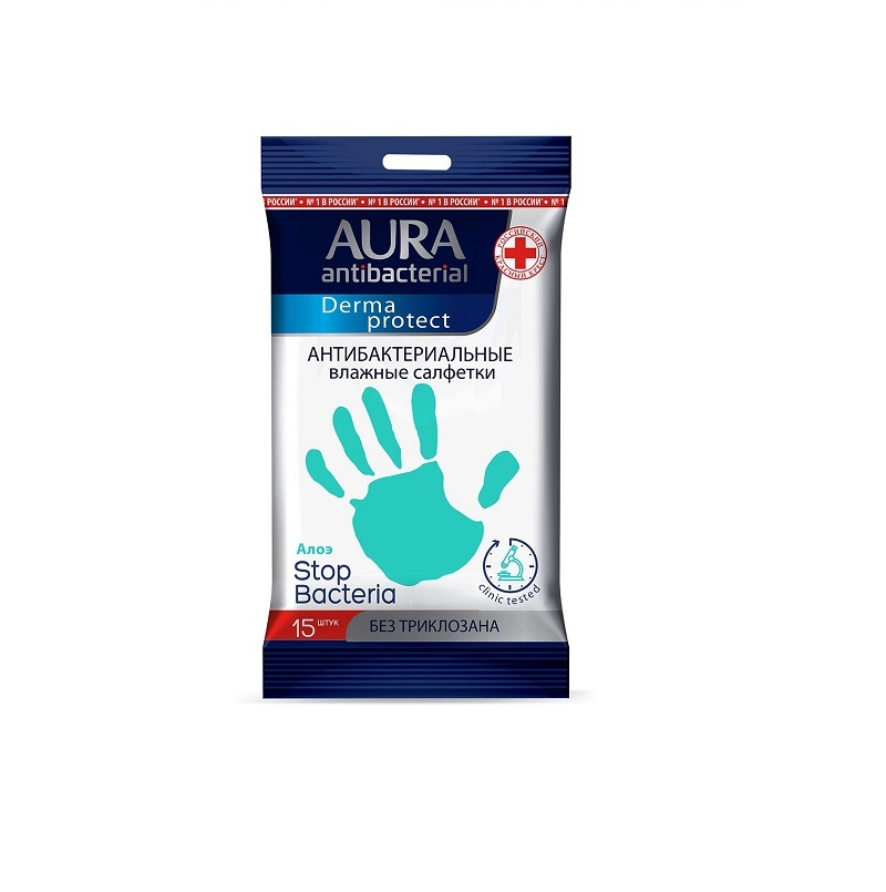 Aura антибактериальные Derma Protect с алоэ 15 шт (Aura ) антибактериальные с лимоном