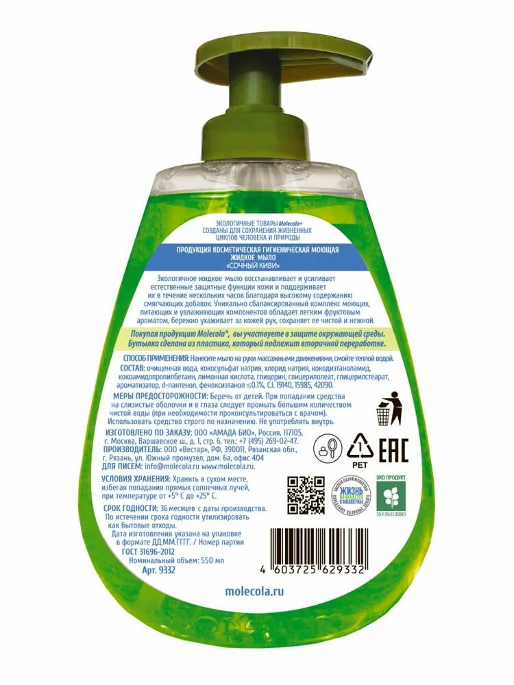 Molecola Крем-мыло для рук Сочный Киви экологичное 500 мл (Molecola ) (MOL9332)