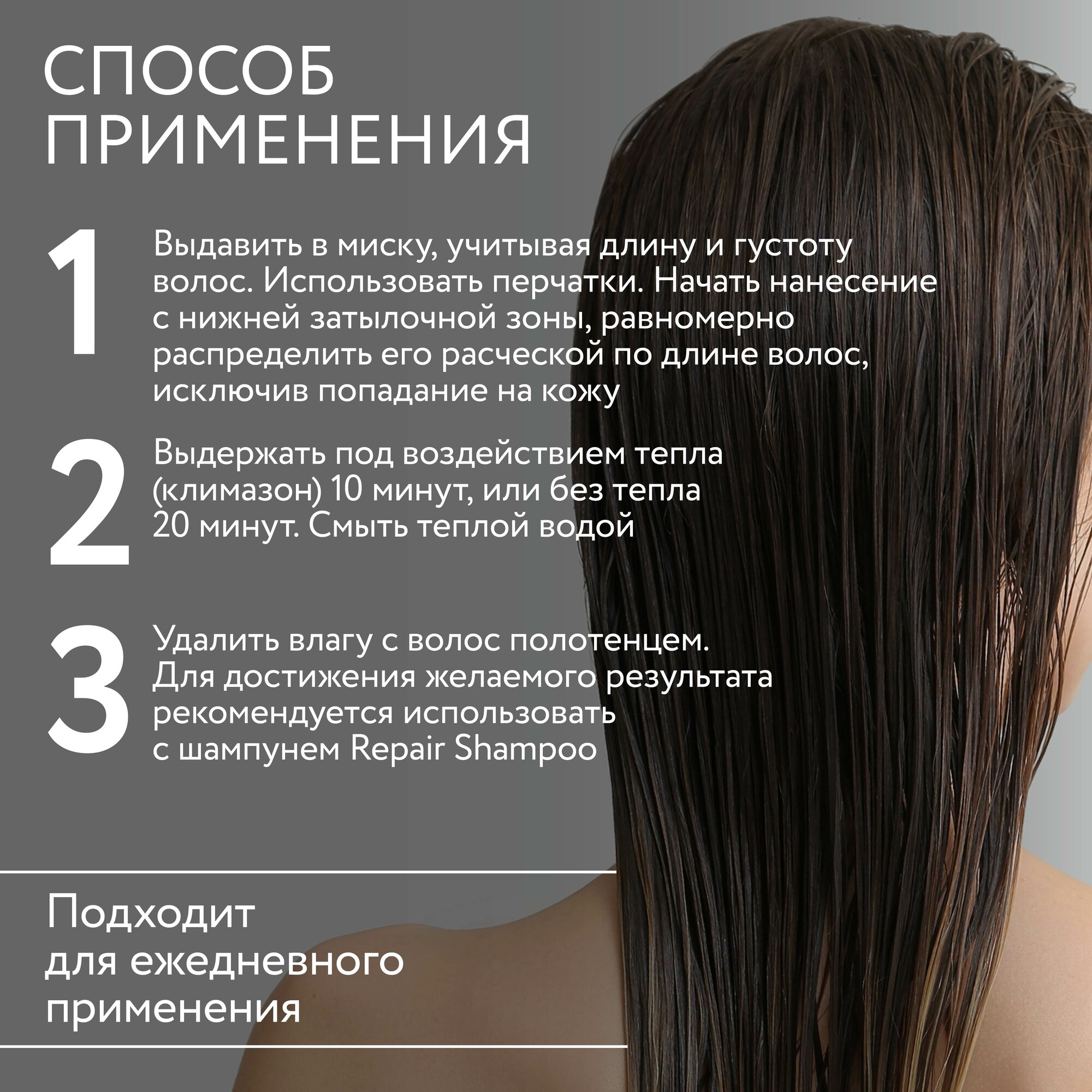 | Применение | выдавить гель в миску, учитывая длину и густоту волос. Использовать перчатки. Начать нанесение с нижней затылочной зоны, выделив прядь толщиной 2 см. Кисточкой нанести на волосы гель, равномерно распределить его расческой по длине волос. Приступить к следующей пряди. Защитить краевую линию роста волос ватным жгутом, исключив попадание восстанавливающего геля на кожу. Одеть на голову полиэтиленовую шапочку. Выдержать 20 минут или 10 минут под воздействием тепла (климазон). Тщательно смыть теплой |