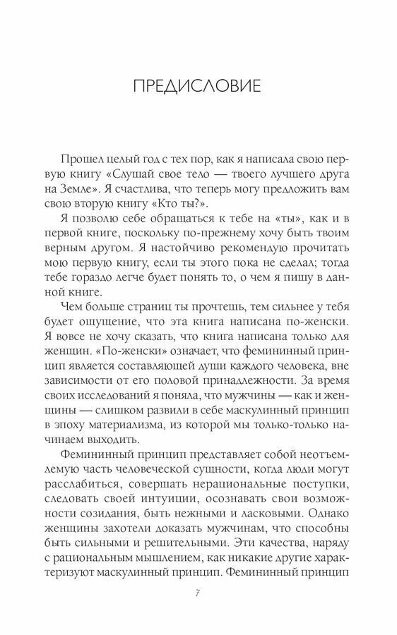 Соглашусь с ранее опубликованным комментарием, что для начинающих копаться в самопознании эта книга вполне подойдет. Я много прочитала книг на эти темы, есть с чем сравнить, и у Лиз Бурбо мною прочитана не одна книга, но тем не менее, некоторые вещи, фразы я для себя отметила. Видимо книга, как это часто бывает, попала ко мне в руки именно за этим, чтобы я обратила внимание на определенные моменты. Не понравилось, что сто страниц предпоследней главы идут чисто описание болезней и их психосоматический фактор возникновения. Я не к тому, что это лишнее, это всё интересно и полезно знать первопричины. Но у Бурбо и так есть отдельное издание, полностью посвященное всем видам болезней, с описанием того, почему они возникают. Но если с этой книги начинать именно знакомство, то нормально, новичкам это будет интересно и полезно.