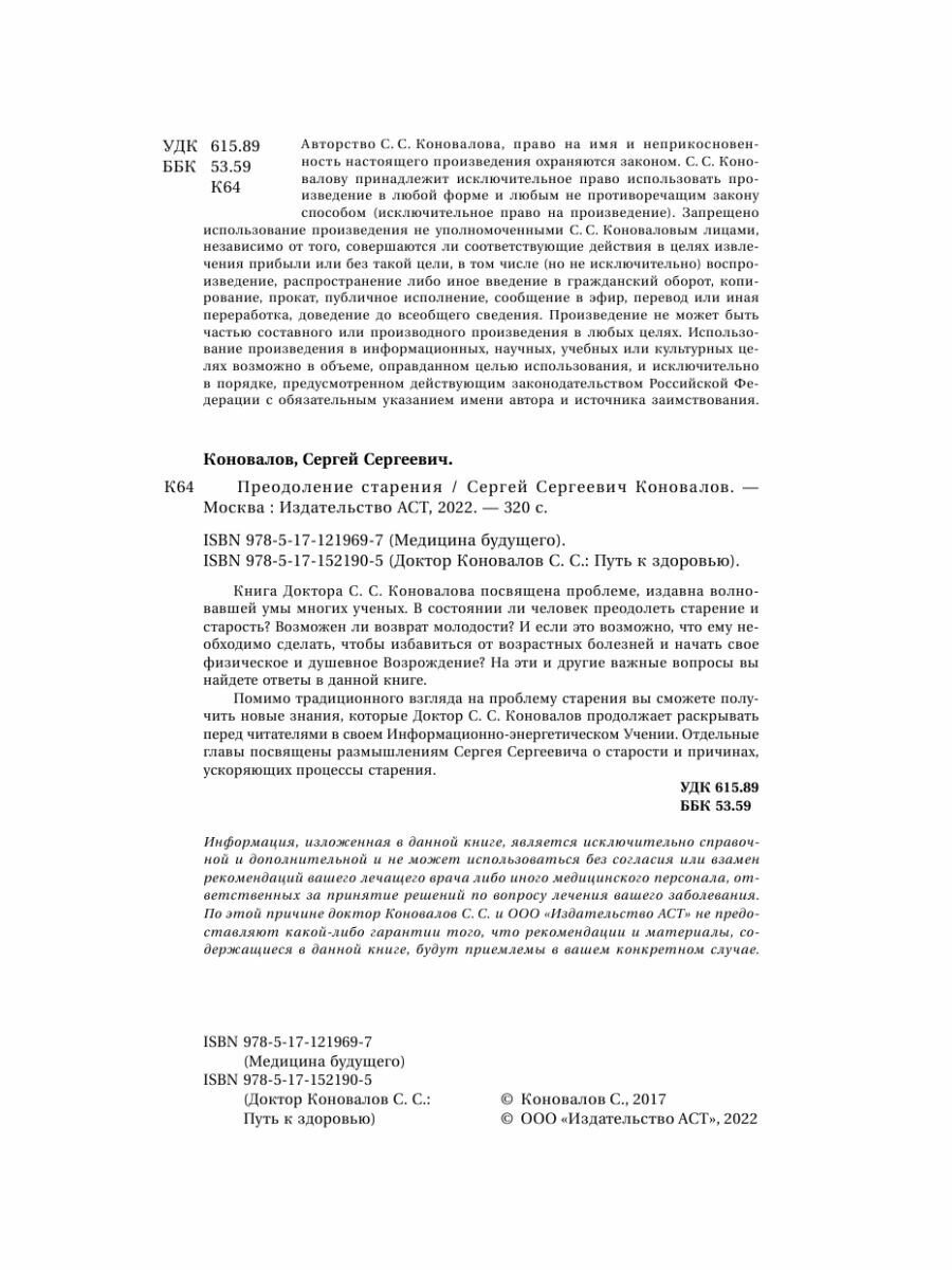 Преодоление старения. Информационно-энергетическое Учение. Начальный курс (Коновалов Сергей Сергеевич); ООО "Издательство Астрель", 2020