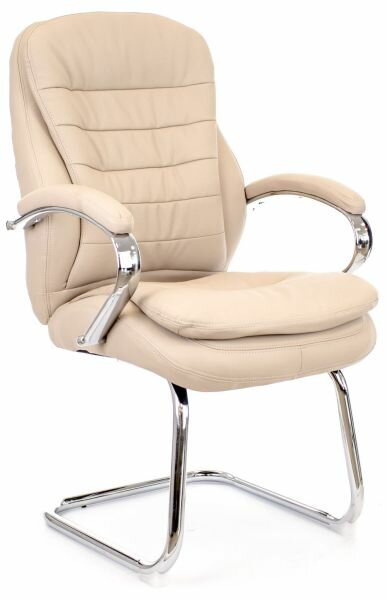 Кресло посетителя Everprof Valencia имеет оббивку из высококачественной экокожи, под которой находится вспененный полиуретановый наполнитель плотностью 25 кг/куб.м. Модель обладает немонолитным каркасом, установленным на прочные полозья из хромированной стали, которые имеют специальные пластиковые упоры. Также в модели предусмотрены удобные подлокотники из стали с мягкими накладками из PU-кожи.