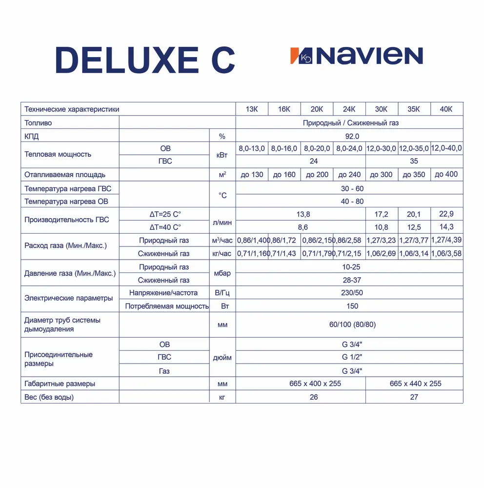 Корейский производитель отопительного оборудования Navien предлагает Вам модельную линейку традиционных газовых котлов DELUXE Comfort, которые предусматривают настенный монтаж. Агрегаты этой серии отличаются усовершенствованной конструкцией гидравлической группы, что делает их еще более простыми в подключении и абсолютно надежными в эксплуатации. В серию вошли агрегаты мощностью от 13 до 35 кВт.