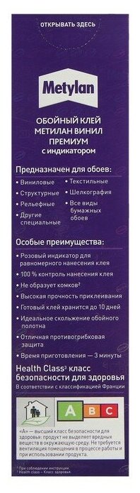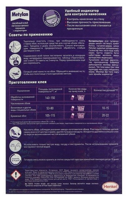 Обойный клей Metylan — это простой в использовании, высококачественный состав. Он применим для поклейки всех видов виниловых и структурных обоев, и содержит цветовой индикатор, позволяющий отслеживать равномерность нанесения. Клей не мешает скользить наклеиваемому материалу во время подгонки, что позволяет легко стыковать полотна. При работе следует соблюдать рекомендации производителей обоев и покрытий.