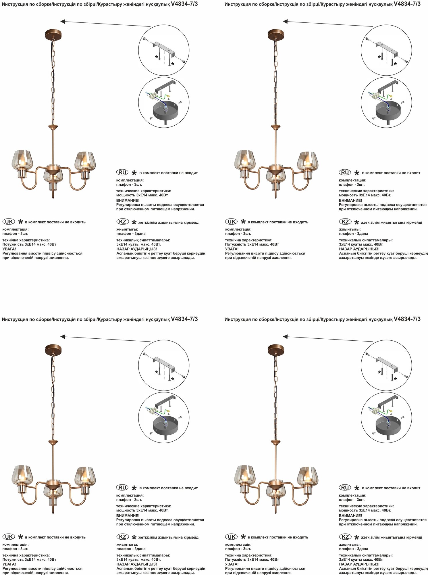 | Количество плафонов | 3 |