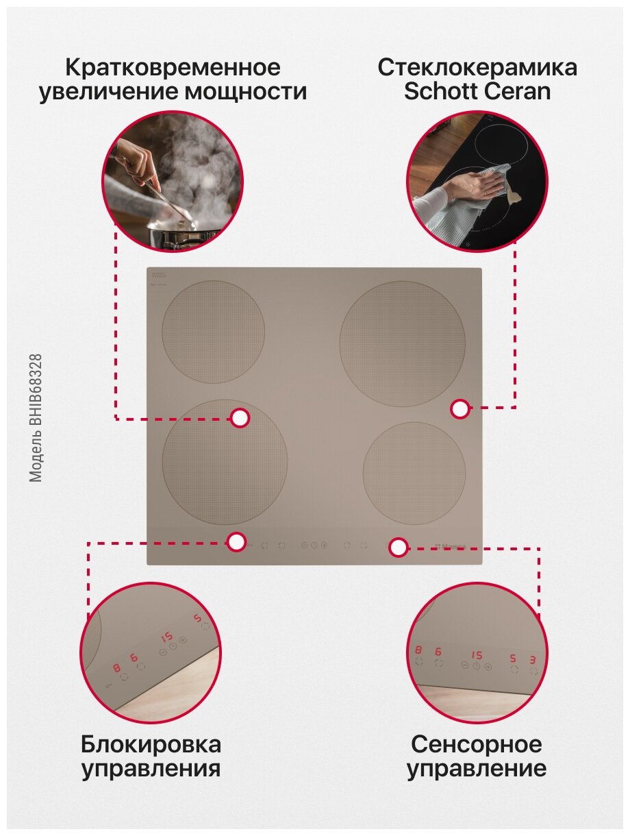 | Безопасность | защитное отключение, кнопка блокировки панели, индикация остаточного тепла |