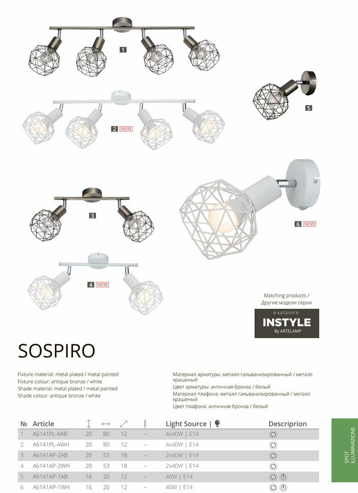 | Вид светильника | спот |