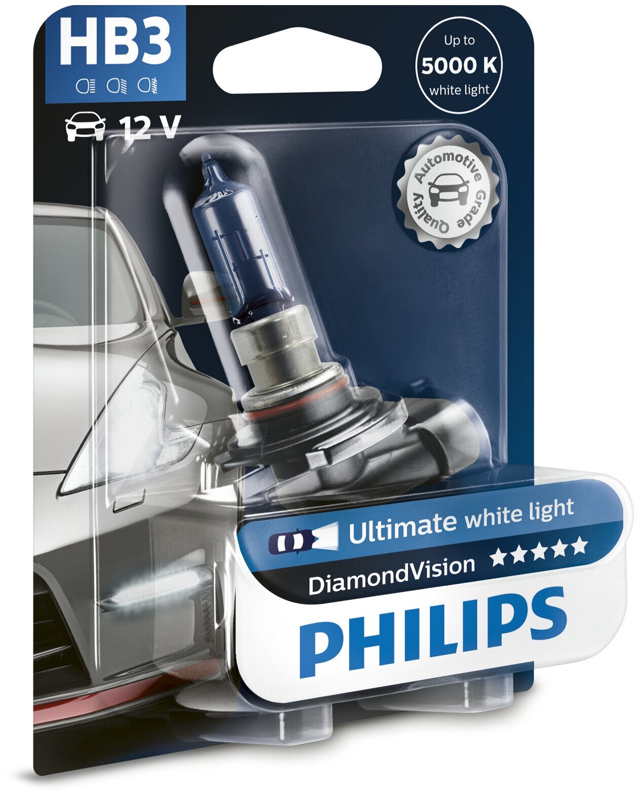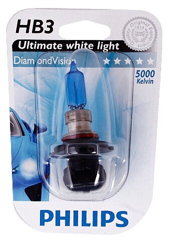 Автомобильная лампа из серии Philips DiamondVision излучают яркий белый свет с цветовой температурой до 5000 К и обеспечивают более высокий световой поток, чем стандартные лампы головного освещения. Лампы создают интересный эффект, который идеально подходит для вождения в городских условиях, — для стильных водителей, которые ценят высокую видимость на дороге.