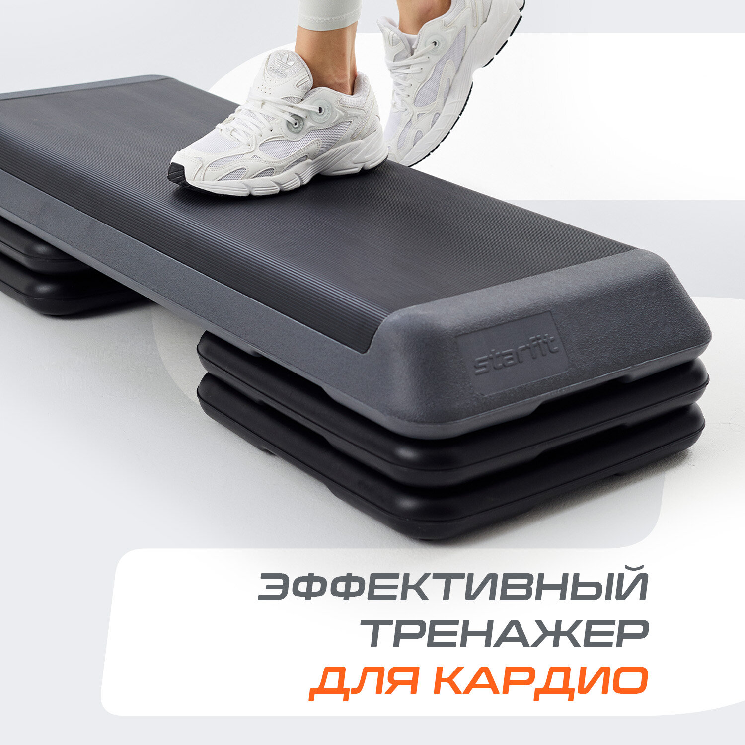 Степ-платформа STARFIT , 3-уровневая, с обрезиненным покрытием позволяет оптимизировать нагрузку на мышцы ног и ягодиц, сделать мышцы тела подтянутыми и стройными. За счет высокоинтенсивной тренировки на степе можно наладить работу сердечно-сосудистой системы.