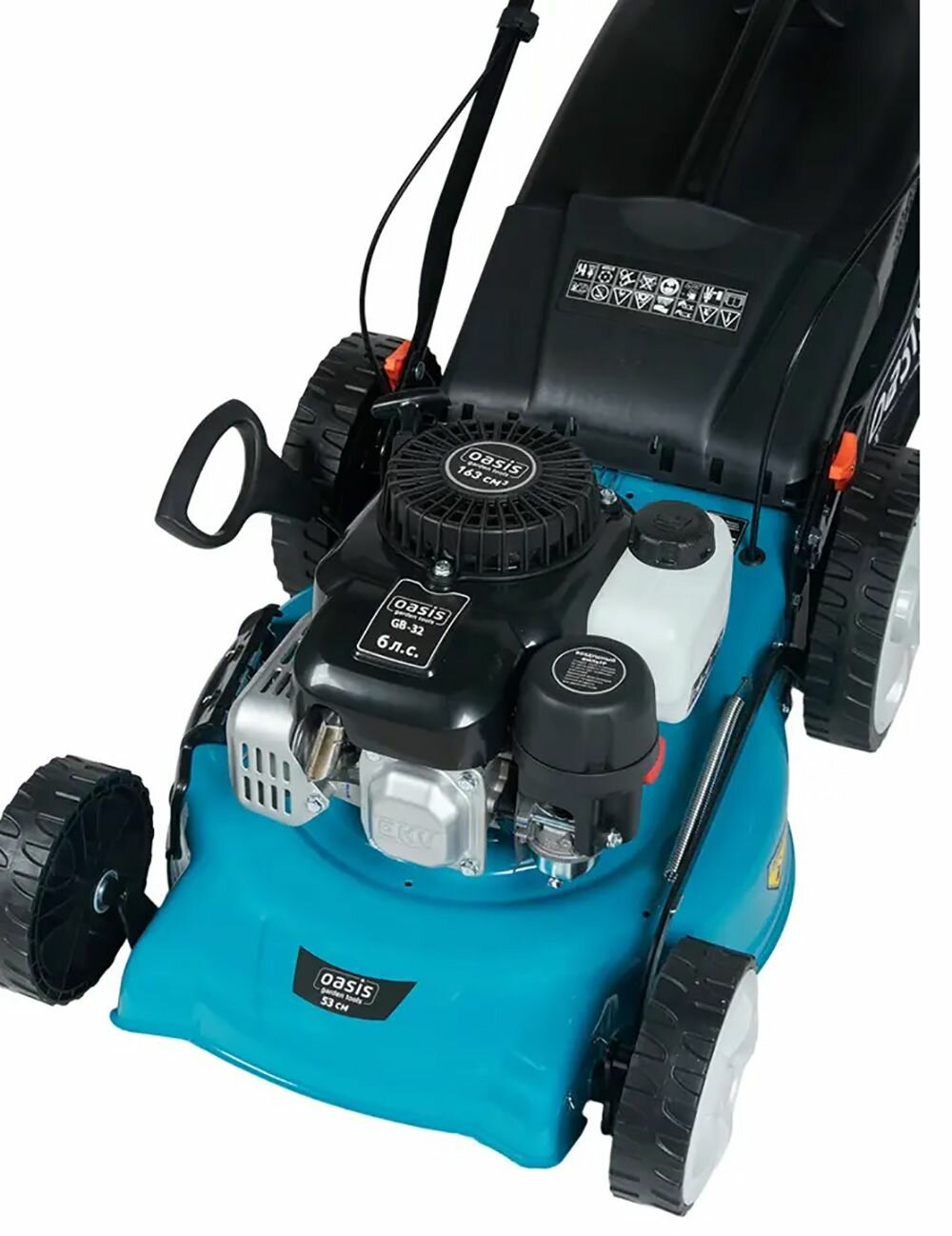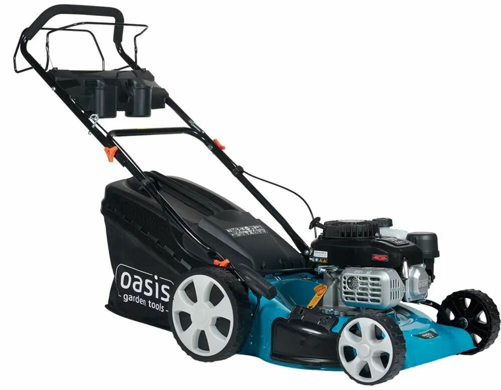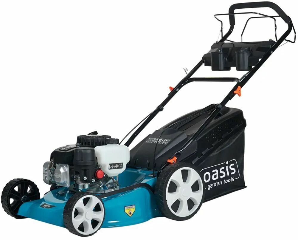 **Газонокосилка Oasis Garden Tools ** — самоходная модель, рассчитанная на работу на площади до 1600 м². Модель оснащена мощным двигателем в 6 л.с., что позволяет ей легко справляться с любой травой. Кроме того, ширина кошения составляет 53 см, что позволяет обрабатывать большие площади за короткий промежуток времени. Одной из особенностей этой газонокосилки является ее самоходность. Это означает, что вам не придется прилагать много усилий для ее перемещения по участку. Она также оснащена функцией мульчирования, которая позволяет измельчать траву и использовать ее в качестве удобрения для газона. Травосборник имеет объем 65 литров, что позволяет реже прерывать работу для его опустошения. Высота кошения регулируется в 8 положениях, что дает возможность подобрать оптимальный режим для различных типов газонов. Газонокосилка оснащена эргономичной рукояткой с мягкими накладками для удобства использования. Она также имеет складную конструкцию, что облегчает ее хранение и транспортировку.