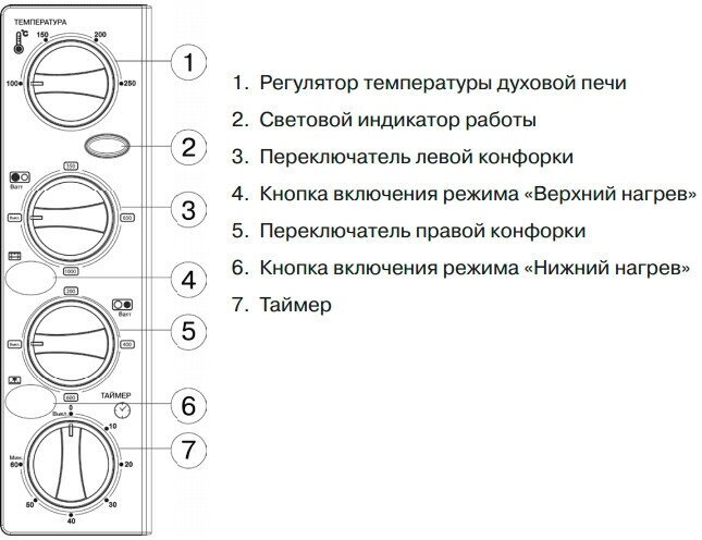 - регулирование температуры конфорок, таймер 60 минут.