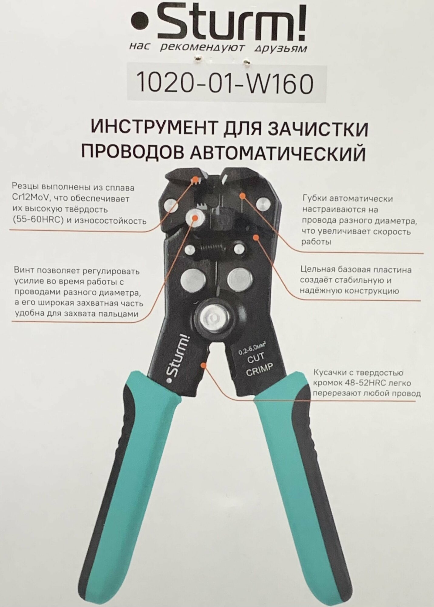 - Sturm 1020-01-W210 инструмент для зачистки проводов автоматический.