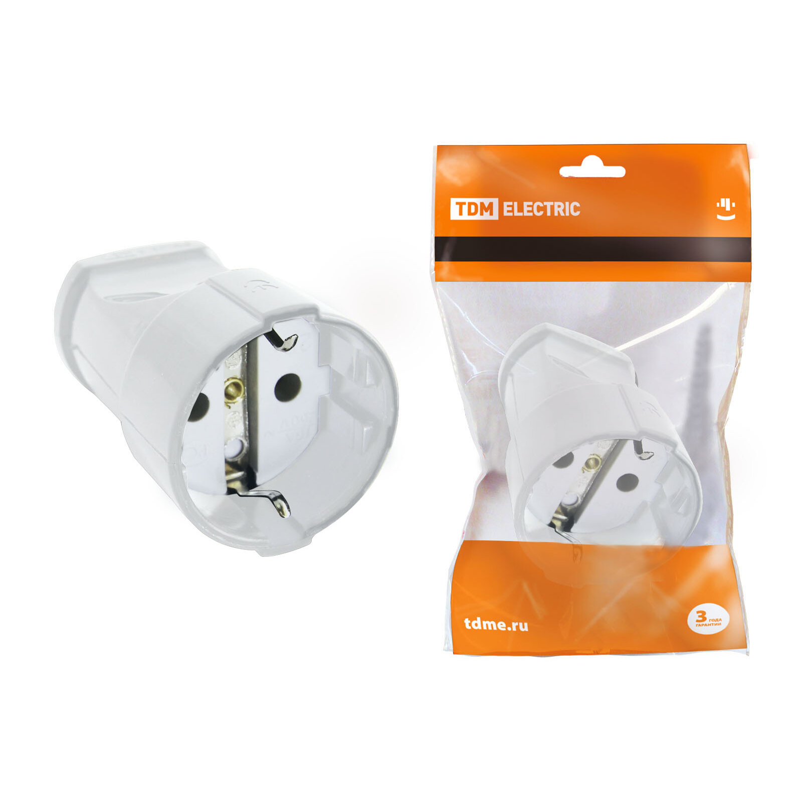 Простая одноместная электрическая розетка с заземлением. Бралась для изготовления удлинителя. Корпус розетки гладкий, белого цвета, жёсткий и прочный, без дефектов отливки. Электрические контакты хорошего качества, не тонкие, провод и подключаемую вилку держат надёжно. Провод 3х1,5 мм в корпус розетки входит легко, места там достаточно. Вес розетки 38г. Размеры: общая длина – 7,1 см, ширина (максимальная в розеточной части) - 4,4 см, ширина корпуса - 3,8 см (в изгибе - 2,4 см), диаметр отверстия для провода - 1 см.