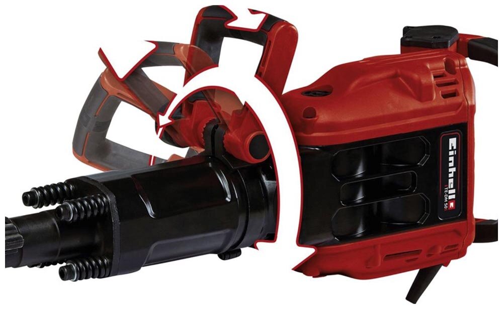 | Прочие особенности и свойства | Отбойный молоток Einhell TE-DH 50 4139130 имеет двигатель мощностью 1700 Вт, выдающему с помощью пневматического ударного механизма энергию удара 50 Дж с частотой 1800 ударов в минуту.,,Прочная и надежная конструкция отбойного молотка готова к длительным тяжелым работам.,,Регулируемая рукоятка в горизонтальной и вертикальной плоскостях на 180° и 360° соответственно и длинный 4-х метровый кабель питания с резиновой изоляцией делают отбойный молоток удобным и гибким в работе.,,Вибропоглощающая ручка уменьшает вибрацию, функция плавного пуска делает работу с инструментом более безопасной.,,Автоматическое отключение щеток при выработке своего ресурса предотвращает повреждение коллектора.,,Инструмент поставляется в надежном и удобном кейсе для хранения и транспортировки.,,Также в комплект поставки входят пикообразное и плоское долота и ветошь для чистки инструмента.,Независимость от заряда батареи и, соответственно, большая производительность без простоев для зарядки,Мощный двигатель для высокой производительности,Длинный сетевой кабель для свободного перемещения по рабочей площадке,Удобный кейс решает вопрос хранения и транспортировки Einhell TE-DH 50 4139130 |