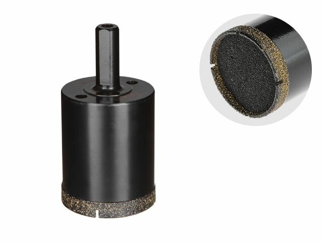 Для работы лучше всего использовать аккумуляторную дрель, сочетающую высокий крутящий момент и невысокие обороты. Рекомендуемая частота вращения от 300 до 400 об/мин. Обязательное охлаждение водой. Рекомендуется использовать кондуктор для предотвращения проскальзывания при начальном засверливании.