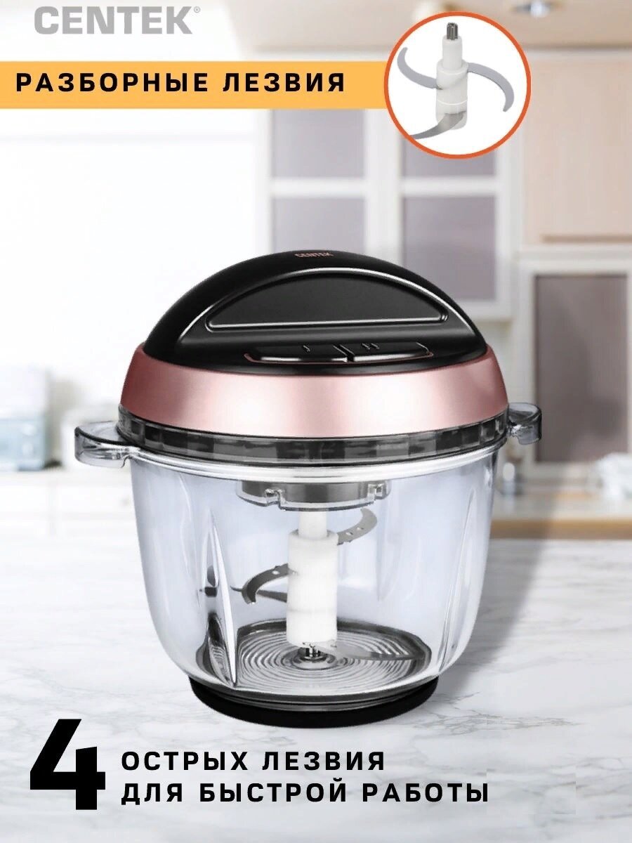 Измельчитель Centek – кухонный прибор, который обеспечивает быстрое и эффективное измельчение продуктов различной твердости. Стальной нож с 4-лопастной разборной конструкцией качественно справляется со своей задачей. Устройство оснащено двигателем мощностью 600 Вт, 2 скоростными режимами и чашей объемом 2.3 л, изготовленной из термостойкого и прочного закаленного стекла. Для удобства в эксплуатации измельчитель Centek оборудован крышкой с переносной ручкой, уплотнительным силиконовым кольцом и кнопками управления. Прорезиненное основание гарантирует устойчивость техники, предотвращая скольжение на столе.
