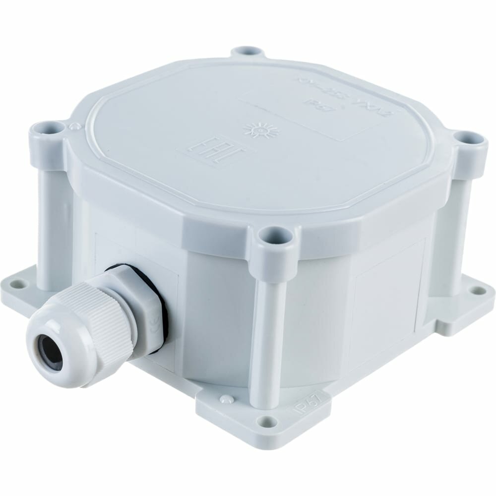 Коробка для разводки проводов, откр.уст., 2 каб.ввода, полиамид, огнест. - 850°С, IP67, УХЛ2, габ.разм.: 130х78,5х44,5 мм, разм.кор.: O75,7х44,5 мм, уст.разм.:73,5х73,5±0,2, O пров. 4,5-10 мм