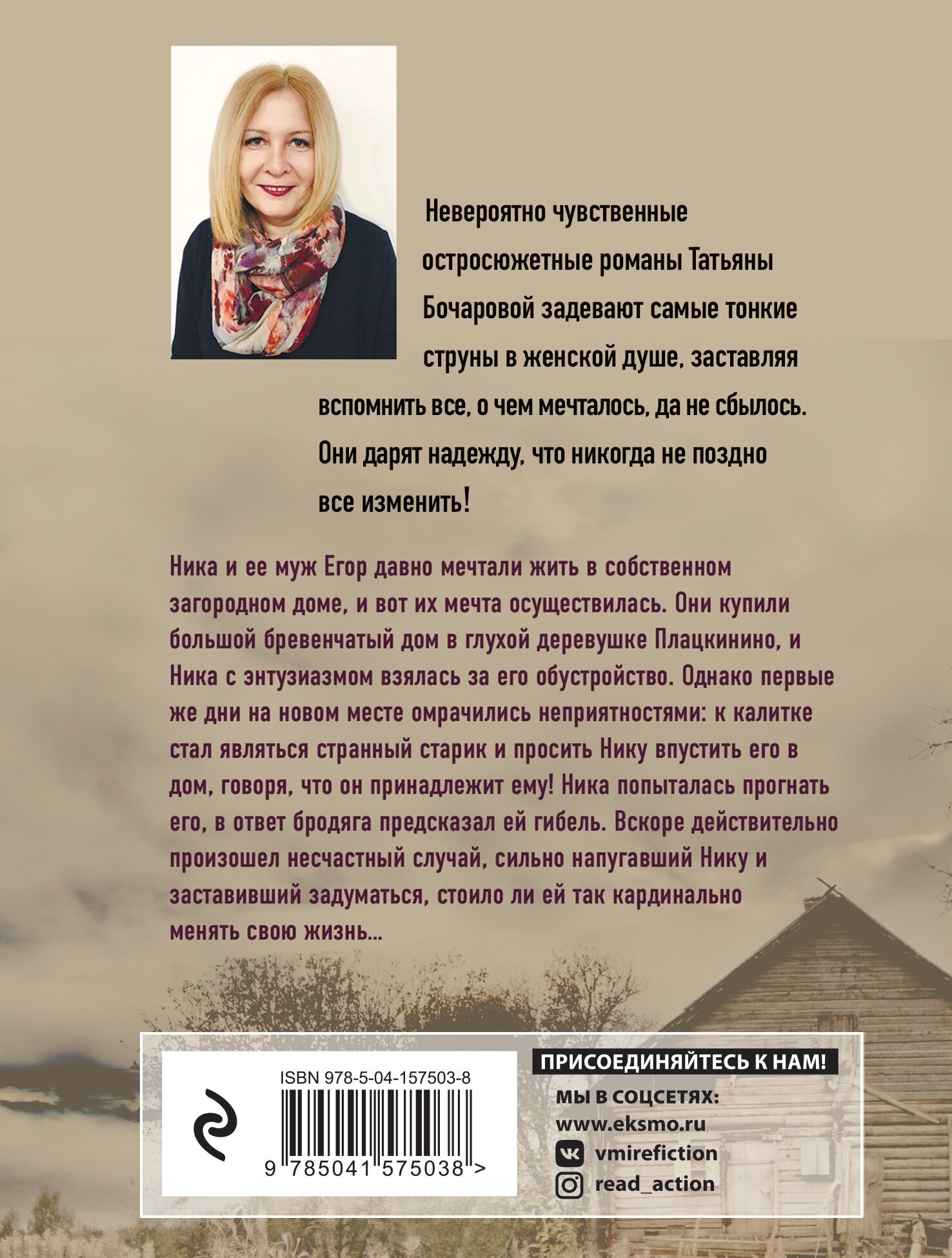 Ника и ее муж Егор давно мечтали жить в собственном загородном доме, и вот их мечта осуществилась. Они купили большой бревенчатый дом в глухой деревушке Плацкинино, и Ника с энтузиазмом взялась за его обустройство. Однако первые же дни на новом месте омрачились неприятностями: к калитке стал являться странный старик и просить Нику впустить его в дом, говоря, что тот принадлежит ему! Ника попыталась прогнать его, в ответ бродяга предсказал ей гибель. Вскоре действительно произошел несчастный случай, сильно напугавший Нику и заставивший задуматься, стоило ли ей так кардинально менять свою жизнь…