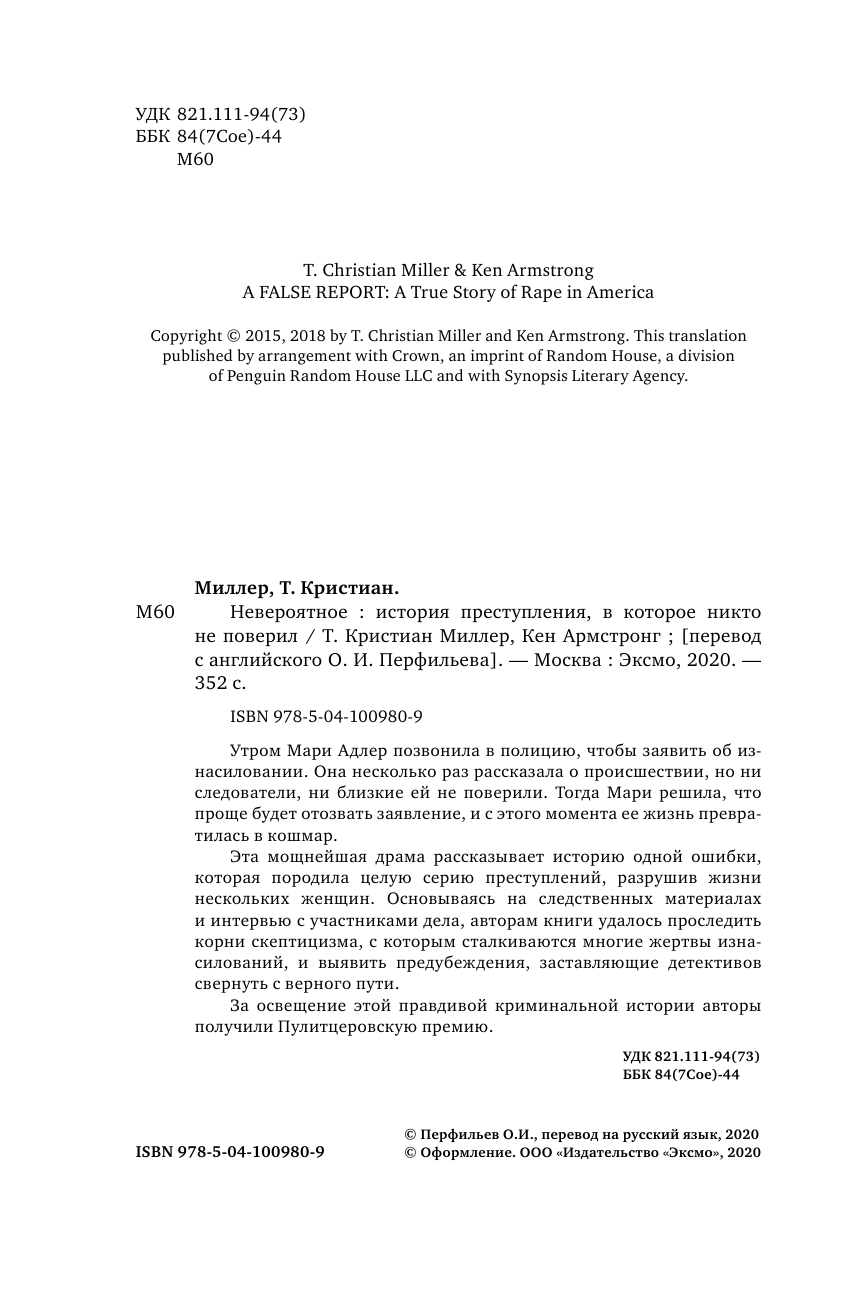 Невероятное. История преступления в которое никто не поверил (Т. Кристиан Миллер, Кен Армстронг); Эксмо, БОМБОРА, 2020