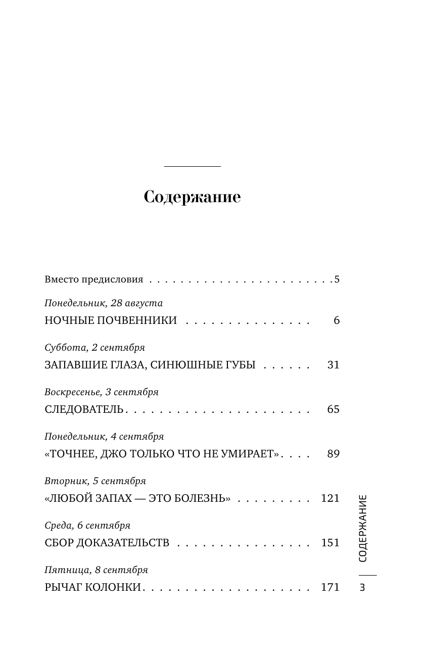 Мне очень понравилось большинство фактов по истории Лондона 19 века. Читая, погружаешься в жизнь Сохо, можешь совместно с героями идти по следам эпидемии, распутывая цепочку событий.