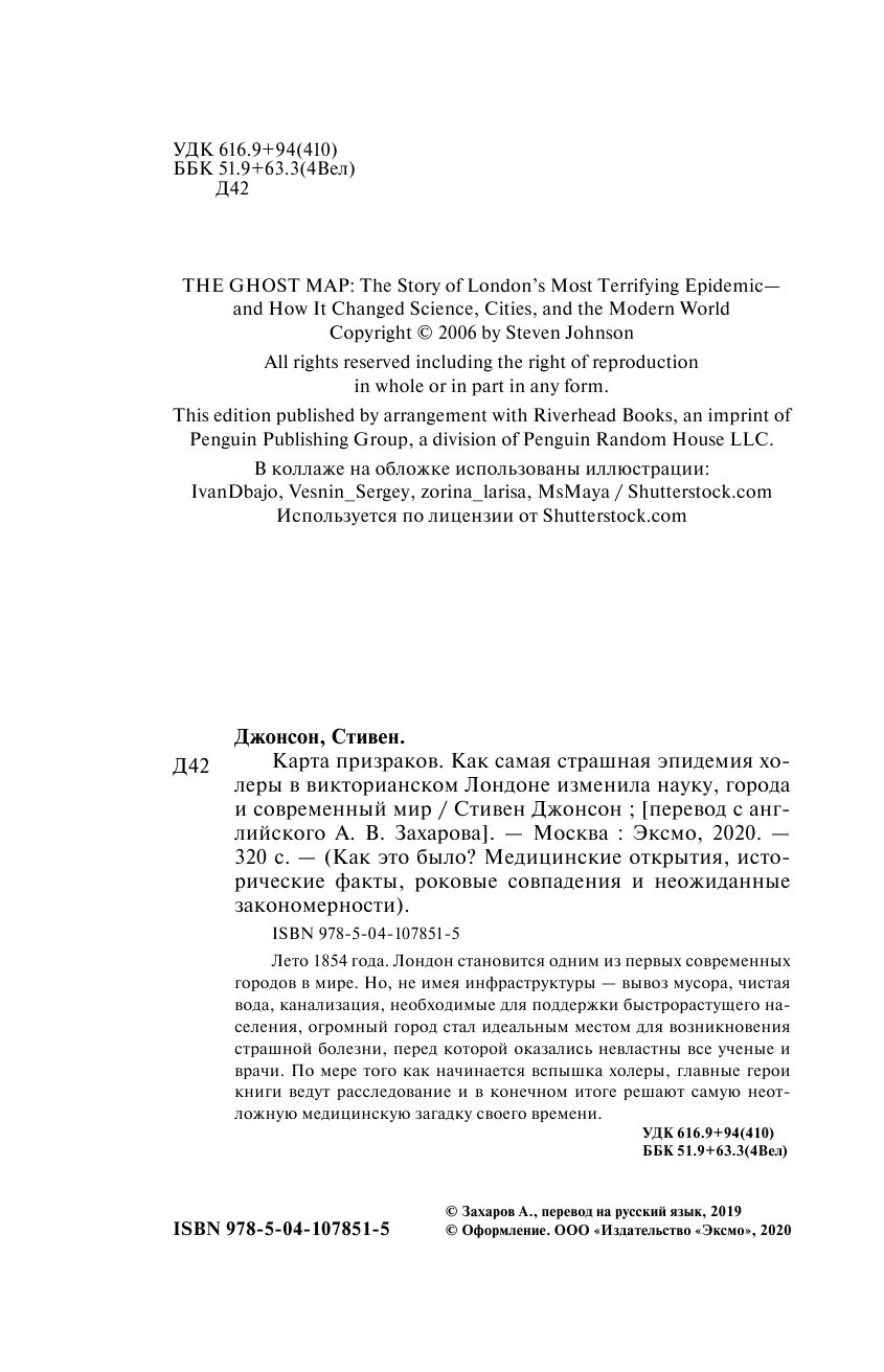 Карта призраков. Как самая страшная эпидемия холеры в викторианском Лондоне изменила науку города и современный мир (Джонсон Стивен); ООО "Издательство "Эксмо", 2020