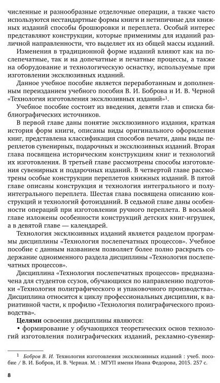 В учебном пособии рассмотрены конструкции и технологические процессы изготовления эксклюзивных, подарочных изданий, особенно в области послепечатной обработки. Соответствует актуальным требованиям Федерального государственного образовательного стандарта среднего профессионального образования и профессиональным требованиям. Для студентов образовательных учреждений среднего профессионального образования, обучающихся по направлению подготовки 29.03.03 «Технология полиграфического и упаковочного производства», аспирантов, а также слушателей курсов повышения квалификации.