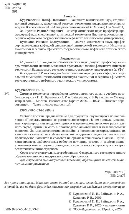 Химия и технология переработки плодово-ягодного сырья 2-е изд. испр. и доп. Учебное пособие для вузов (Бурачевский Иосиф Иванович; Зайнуллин Радик Анварович; Кунакова Райхана Валиулловна); ЮРАЙТ, 2022