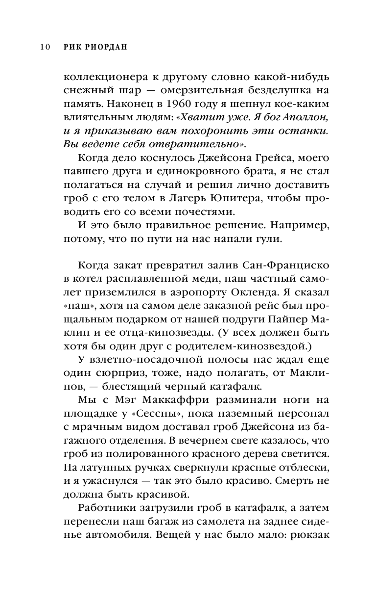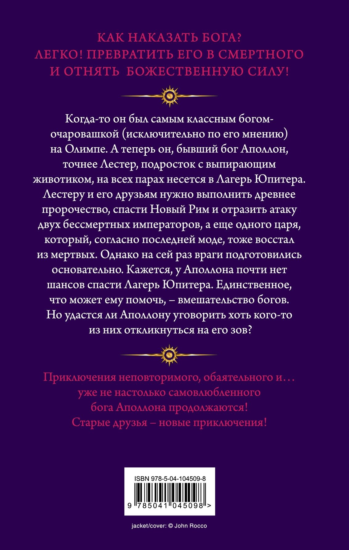 Спасти Лагерь Юпитера, отразить атаку двух злобных императоров и одного царя, восставшего из мертвых, не дать больше ни одному своему другу умереть и желательно не погибнуть самому - таков план Аполлона на ближайшие дни. Кажется, все это легкотня для олимпийского бога. Вот только в этом и проблема: Аполлон уже давно свергнут с Олимпа и пребывает в теле пухлого подростка по имени Лестер. А это значит, что его и его друзей ждут новые опасные битвы. Чтобы не позволить врагам разрушить Лагерь Юпитера, Лестеру снова придется пожертвовать всем - возможно, даже своей жизнью…
