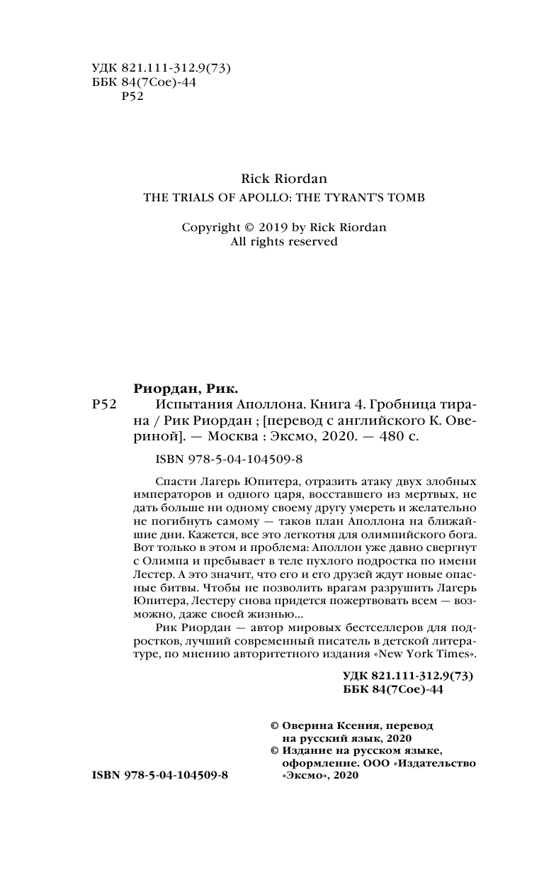 Книга: Гробница тирана (Рик Риордан); Эксмо, 2020