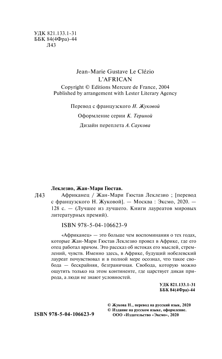 Книга: Африканец (Жан-Мари Гюстав Леклезио); Эксмо, Редакция 1, 2020