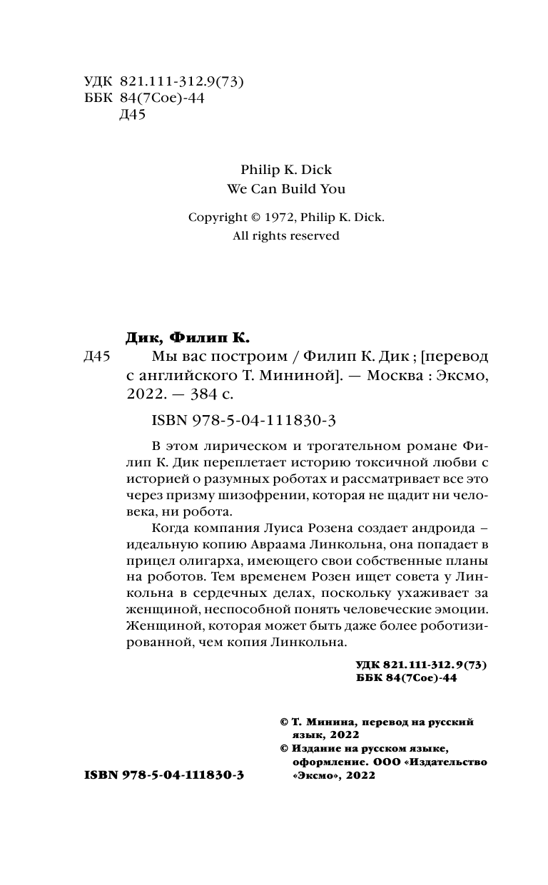 Книга: Мы вас построим (Филип Киндред Дик); Эксмо, Редакция 1, 2022